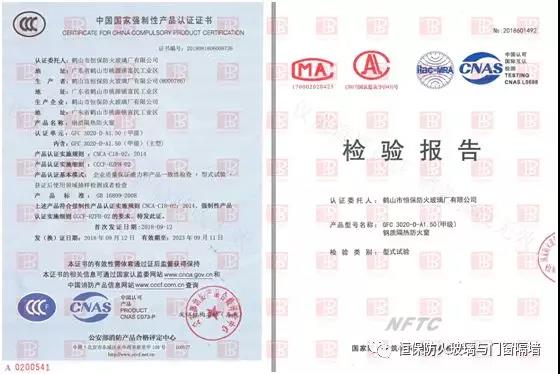 鶴山市恒保防火玻璃廠有限公司經(jīng)過(guò)多年努力,終于解決這一行業(yè)難題:3000mmX2000mm超大尺寸版面,GFC 3020-D-A1.50(甲級(jí))鋼質(zhì)隔熱防火窗于2018年6月29日成功通過(guò)國(guó)家防火建筑材質(zhì)量監(jiān)督檢驗(yàn)中心型式試驗(yàn),取得檢驗(yàn)報(bào)告,并于2018年09月11日獲得國(guó)家強(qiáng)制性CCC認(rèn)證證書(shū)(證書(shū)號(hào)2018081806008738)。整窗都能滿足防火完整性和防火隔熱性1.5小時(shí)的要求,既符合建筑設(shè)計(jì)防火規(guī)范的要求,又具有窗的通透性,美觀實(shí)用。完美解決了地鐵高鐵消防控制室超大甲級(jí)防火觀察窗合法化的問(wèn)題!