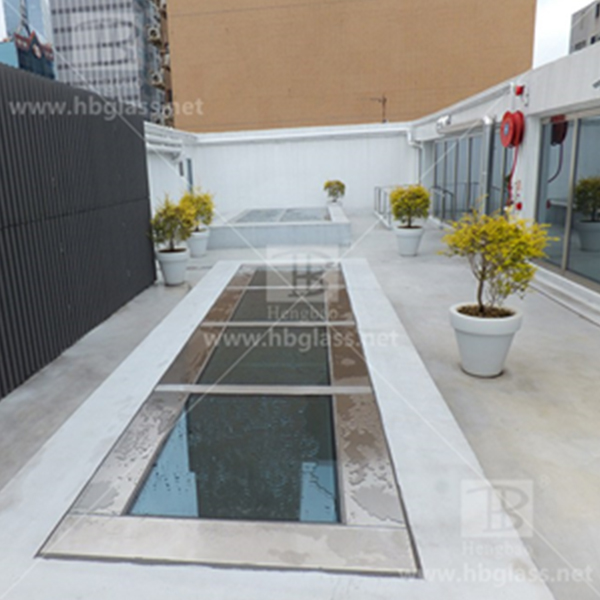防火天頂?shù)嘏_(tái),其玻璃可以滿足在火災(zāi)發(fā)生時(shí)達(dá)到防火、隔熱、承重作用,解決了采光井的火災(zāi)煙通效應(yīng)的問(wèn)題,即使附近發(fā)生火災(zāi),仍可輕松走動(dòng);玻璃地臺(tái)每平方米承重500kg以上,達(dá)到水泥樓板的承重設(shè)計(jì)要求。一般用于商場(chǎng)、酒店、醫(yī)院、購(gòu)物中心、物流中心、影劇院、車站、機(jī)場(chǎng)等政府辦公樓等場(chǎng)所,代替非防火的采光井,解決普通采光井不防火的問(wèn)題。